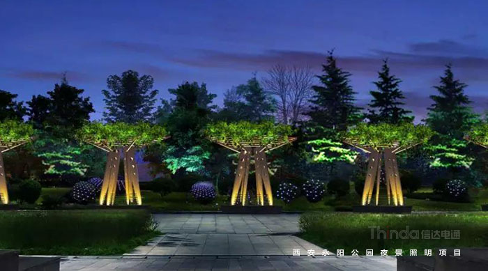 在景觀亮化工程中LED燈具的安裝需要考慮燈具位置同被照射體的關(guān)系,以及如何隱藏?zé)艟哌€能達(dá)到一個(gè)理想的照射效果,例如在于植被的照射關(guān)系中,如何將它們的形狀、色彩、細(xì)部、質(zhì)地等呈現(xiàn)出來(lái),前向光表現(xiàn)形狀,強(qiáng)調(diào)細(xì)部和顏色,通過(guò)調(diào)整燈具與植被的距離以減弱或加強(qiáng)紋理,背光僅表達(dá)形狀,通過(guò)將植被從背景中分離出來(lái)以增加層次感,測(cè)光強(qiáng)調(diào)植物紋理并形成陰影,通過(guò)陰影的幾何關(guān)系將不同區(qū)域的照明效果聯(lián)系到一起。