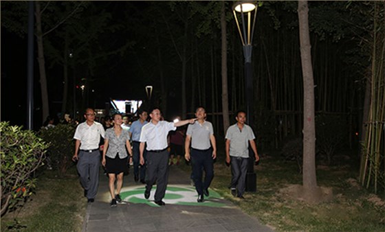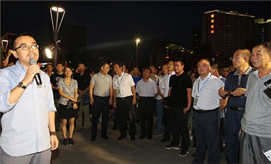 首先考察組一行來到唐城墻遺址公園北廣場,高新區(qū)夜景照明及唐遺址公園燈光秀的總設(shè)計師、北京信達(dá)電通科技董事長王春龍先生給眾領(lǐng)導(dǎo)講解由信達(dá)電通設(shè)計策劃的高新區(qū)夜景亮化提升方案。