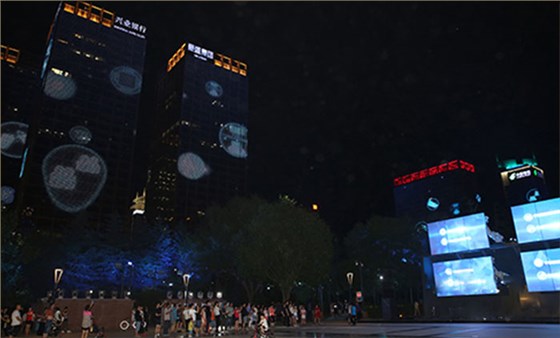 隨后觀摩燈光秀展演及周邊夜景亮化效果。北廣場上絢麗多彩的燈光秀吸引了不少路人駐足欣賞。這里的燈光秀為國內(nèi)首次在戶外應(yīng)用機(jī)器人臂舞動LED屏幕,不斷變換的美麗圖案、不斷閃爍的彩燈令人應(yīng)接不暇。沿著錦業(yè)路、唐延路、科技路一路向北,這里的彩燈最為集中,也最璀璨照人。