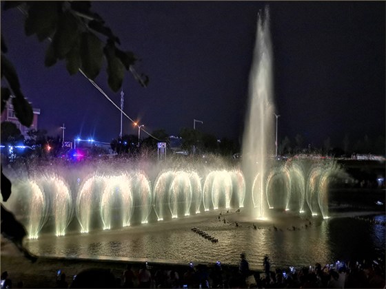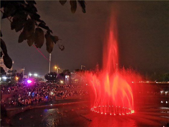 大陳江景觀帶音樂噴泉和水幕電影精彩呈現(xiàn),吸引了上萬居民圍觀。