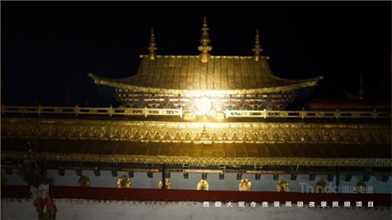 金頂是大昭寺的標志之一,色溫3000k的投光燈營造純凈圣潔的具有佛教氛圍的光環(huán)境,還原了樓宇頂部的夜間狀態(tài),凸顯出大昭寺的整體輪廓和層次感,提升了這一拉薩地標建筑的夜間觀賞性,創(chuàng)造出超越平凡的視覺體驗。