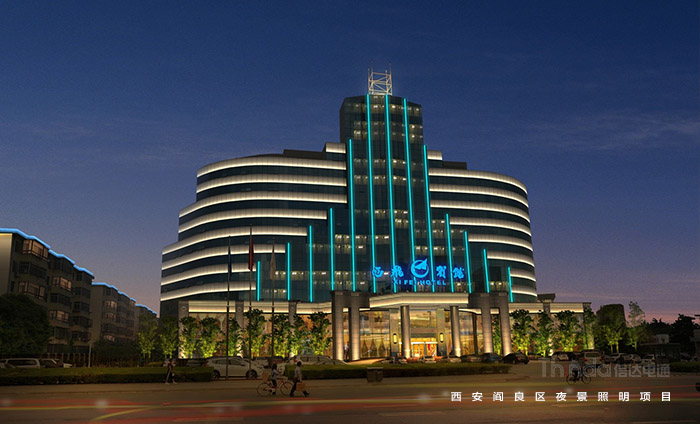 閻良區亮化示范街部分樓宇、景觀亮化設計效果圖與亮化實施后的實景賞析: