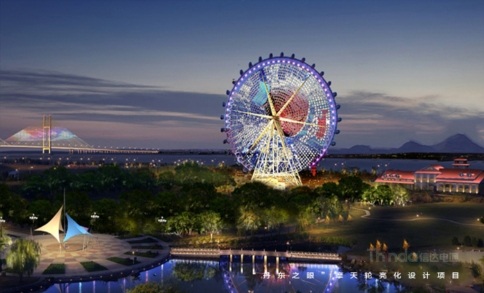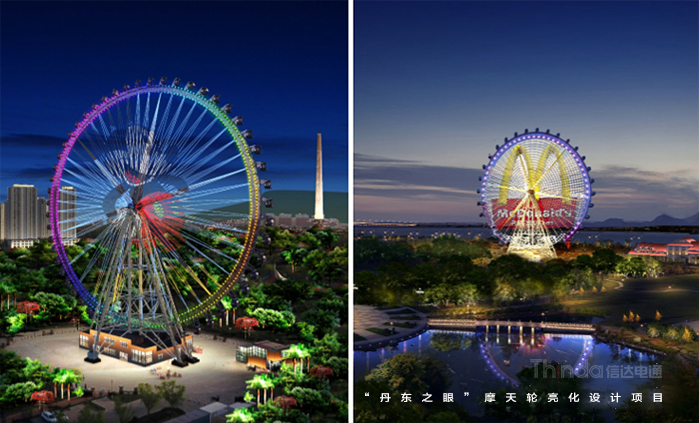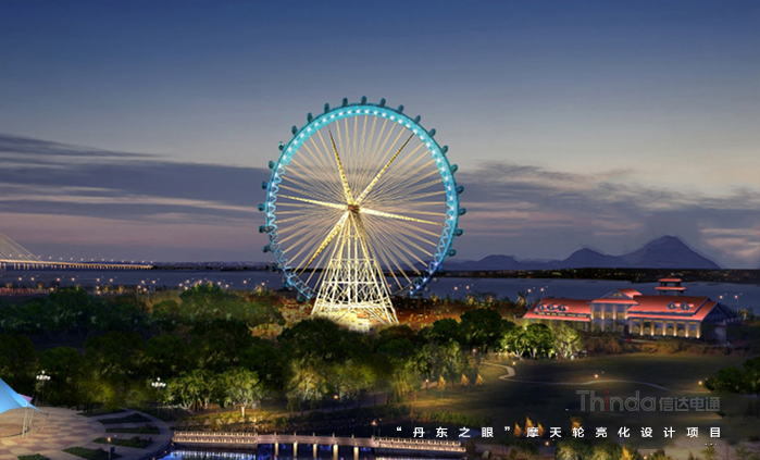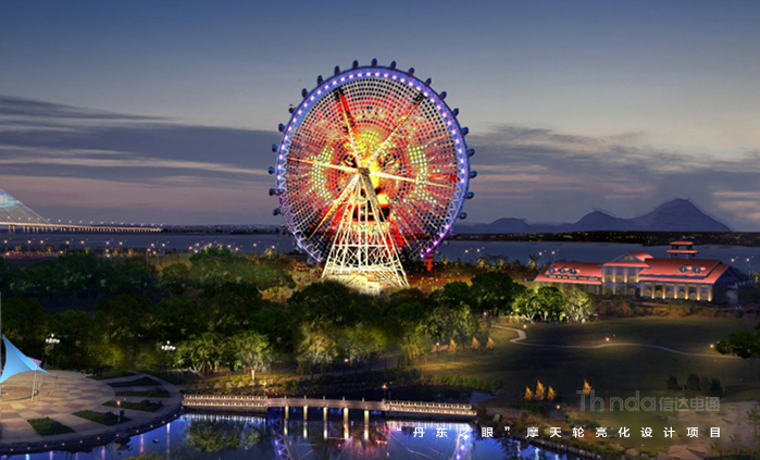被譽(yù)為“丹東之眼”的摩天輪位于丹東新區(qū)的國(guó)門灣公園內(nèi),該公園占地17萬平方米,是丹東比較知名的公園,而且丹東非常靠近中朝邊境線,所以此地區(qū)也被譽(yù)為:中朝邊境互補(bǔ)合作的橋頭堡和未來的區(qū)域綜合交通樞紐。在這重要的經(jīng)濟(jì)和科技發(fā)展地,丹東之眼屹立于此,為這絕美的景色填上了華麗的一筆,而信達(dá)電通的照明設(shè)計(jì)也體現(xiàn)在國(guó)門灣公園內(nèi)的標(biāo)志性建筑—國(guó)門灣摩天輪。