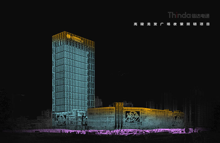 本著綠色照明的理念,信達(dá)電通設(shè)計(jì)了節(jié)日模式、平日模式、深夜模式三種方案,滿足不同時(shí)段廣場(chǎng)的不同照度需求。