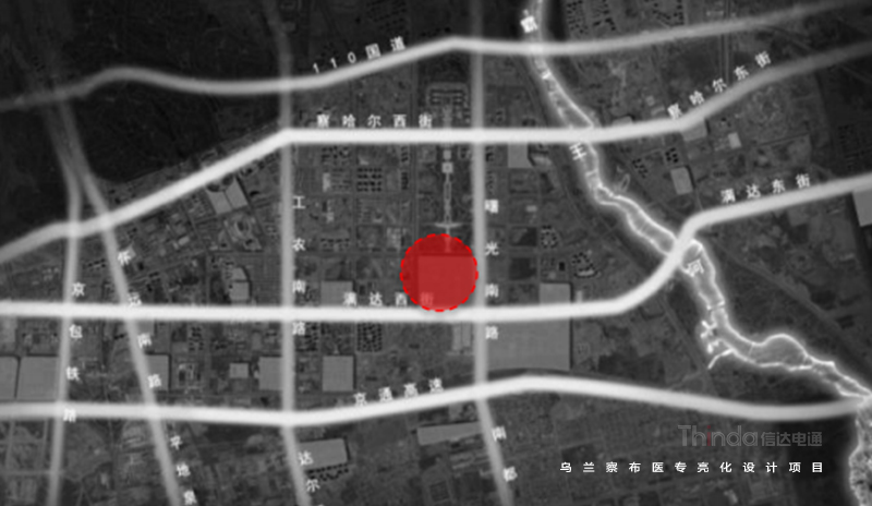 本項烏蘭察布醫學高等專科學校位于內蒙古自治區烏蘭察布市集寧新區,是在1959年成立的烏蘭察布市衛生學校基礎上,經國家教育部2009年3月6日批準升格的內蒙古唯一的一所獨立的醫學高等專科學校。學校以培養實用型醫學專科人才為主,以中職教育為輔,兼顧成人專科教育和短期專業培訓,本項亮化設計將圍繞烏蘭察布醫專進行。